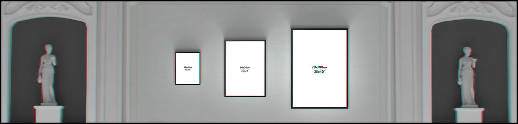 Small: 30x40cm (12x16") Medium: 50x70cm (20x28") Large: 70x100cm (28x40")